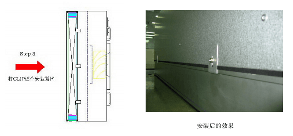 FFU安裝指導(dǎo)指南步驟3:然后將CLIP 勾住高效過濾器的凹槽,并逐一安裝固定,安裝完畢,檢查FFU 箱體與過濾器結(jié)合是否均勻,緊密。