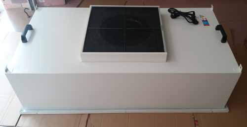 FFU層流罩設有初效過濾器、高效過濾器兩級過濾網。風機從FFU頂部將空氣吸入并經初、高效過濾器過濾,過濾后的潔凈空氣在整個出風面以0.45M/S±20%的風速勻速送出。
