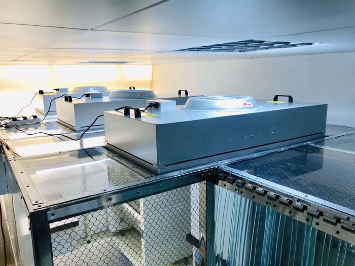 潔凈棚高效過濾單元2設(shè)置在風(fēng)機(jī)1下方,與風(fēng)機(jī)1緊密相連,高效過濾單元2可根據(jù)不同客戶的實(shí)際需要選擇不同的凈化級(jí)別,在高精科技的生產(chǎn)研發(fā)中,比如在半導(dǎo)體工業(yè)中,一般采用凈化級(jí)別很高的PTFE超高效過濾器;