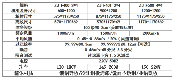 直流FFU風機過濾單元技術參數