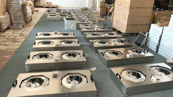 什么是無塵送風(fēng)機組FFU?無塵送風(fēng)機機組FFU系列產(chǎn)品主要用途是凈化送入潔凈區(qū)的空氣,以達到潔凈環(huán)境的要求。無塵送風(fēng)機組FFU它安裝于潔凈區(qū)或工作區(qū)天花龍骨(T-Grid)上或設(shè)備機臺上,用途較廣,其實有些地區(qū)也把無塵送風(fēng)機組叫做FFU。無塵送風(fēng)機組主要應(yīng)用于半導(dǎo)體、液晶顯示、光電電子、精密儀器、化學(xué)、生物醫(yī)藥、醫(yī)院、食品、研究院所、高校、航天、汽車、涂裝、印刷等領(lǐng)域。