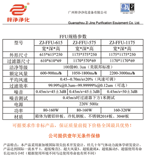 梓凈風機過濾單元FFU標準尺寸規格是依據行業標準而設計的空氣凈化設備產品。