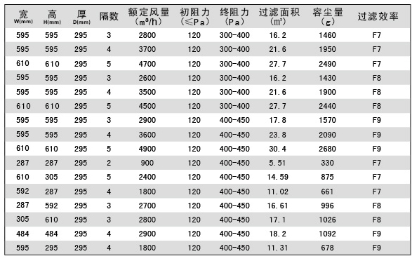 無隔板中效過濾器效率高(主要捕集0.5μm)阻力低厚度薄重量輕安裝方便每臺均經過掃描側漏。